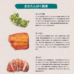 サーモンには良質なたんぱく質やオメガ-3脂肪酸が含まれており、愛犬の健康な筋肉の維持を助け、またきれいな毛並みと健康な皮膚を保ちます。