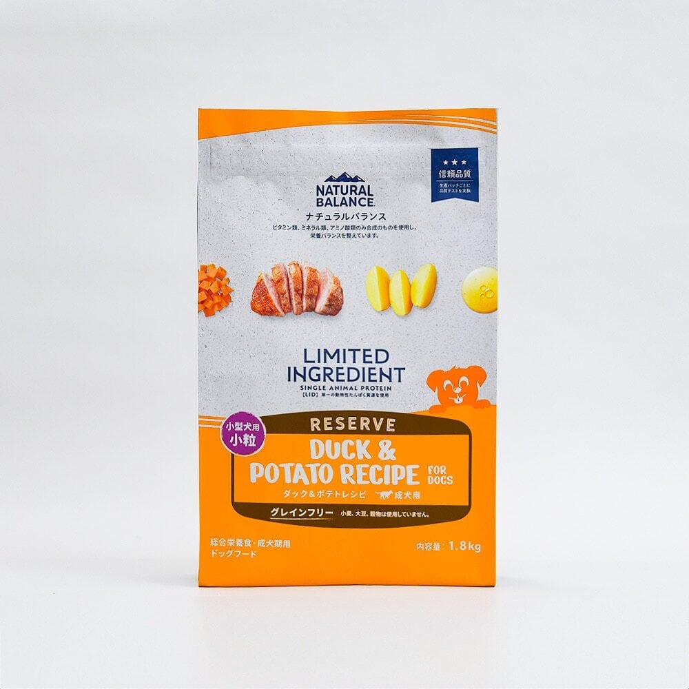 ナチュラルバランス LID 成犬用 サーモン&スイートポテトレシピ「LID RESERVE ダック&ポテトレシピ」は、ダックを主原料とし、動物性たんぱく質源はダックのみを使用したレシピです。