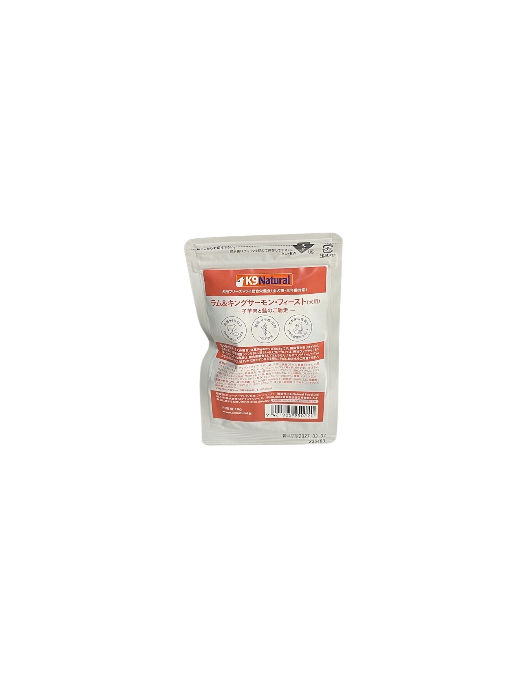 子羊肉、グリーントライプ(子羊)、心臓(子羊)、鮭、腎臓(子羊)、レバー(子羊)、血(子羊)、卵、脾臓(子羊)、骨(子羊)、ひまわり油、フラックスシードフレーク、昆布、ニュージーランド緑イ貝、かぼちゃ、ブロッコリー、カリフラワー、キャベツ、硫酸カリウム、乾燥昆布、りんご、洋なし、塩化ナトリウム、ビタミンE、プロティネイト亜鉛、プロティネイト鉄、酸化マグネシウム、セレン酵母、プロティネイト銅、プロティネイトマンガン、ベータカロチン、ビタミンB1、ビタミンD3