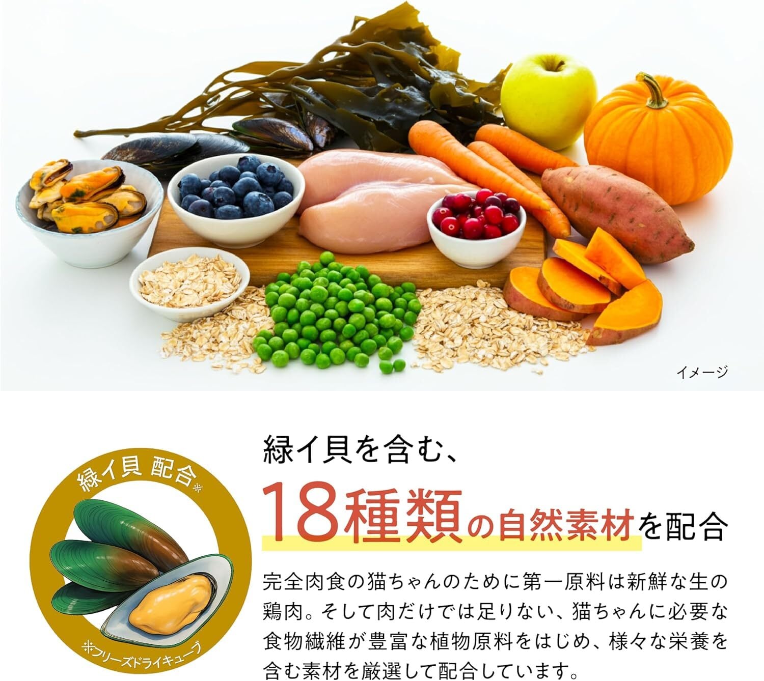 【89% 動物性タンパク比率】新鮮な鶏肉を使用した高タンパクのレシピで、成猫が必要とする動物性タンパクを効果的に供給します。
